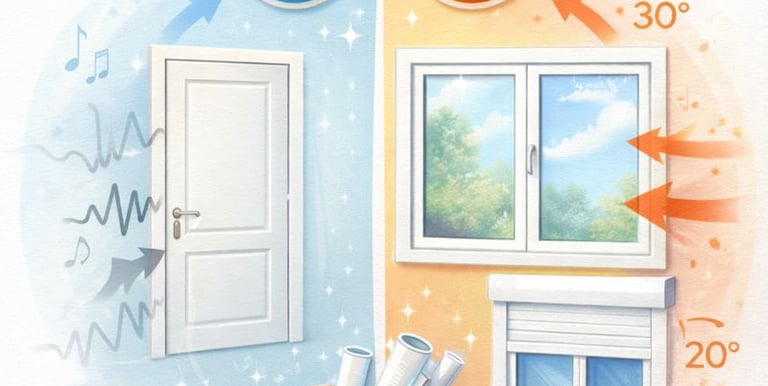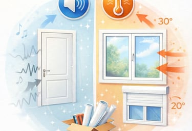 Portes, fenêtres, volets roulants, porte palières, améliorant le confort thermique et acoustique. Solution efficace et durable.