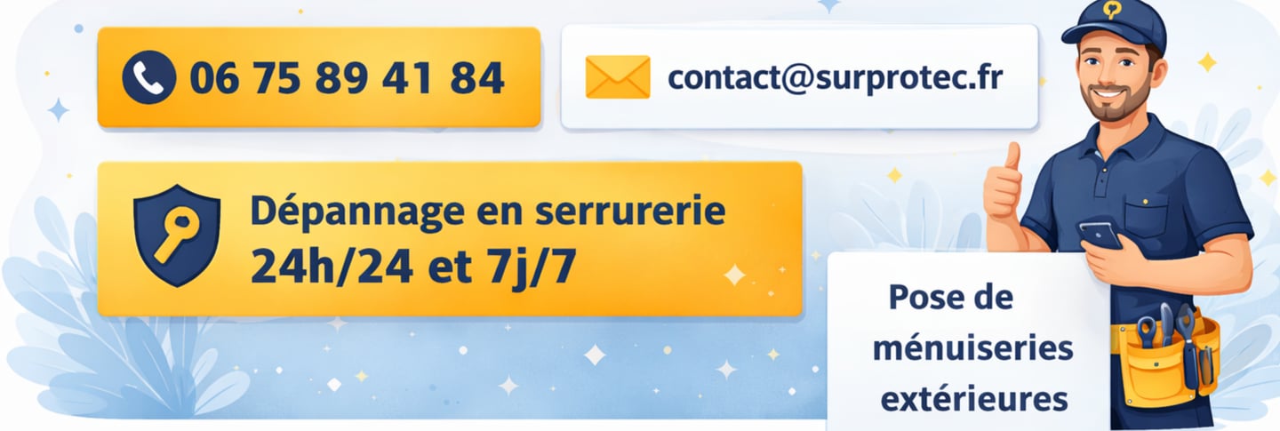 Surprotec, votre serrurier de dépannage et installateur de menuiseries extérieures, vous accompagne pour vos urgences en serrurerie comme pour vos projets d’installation.